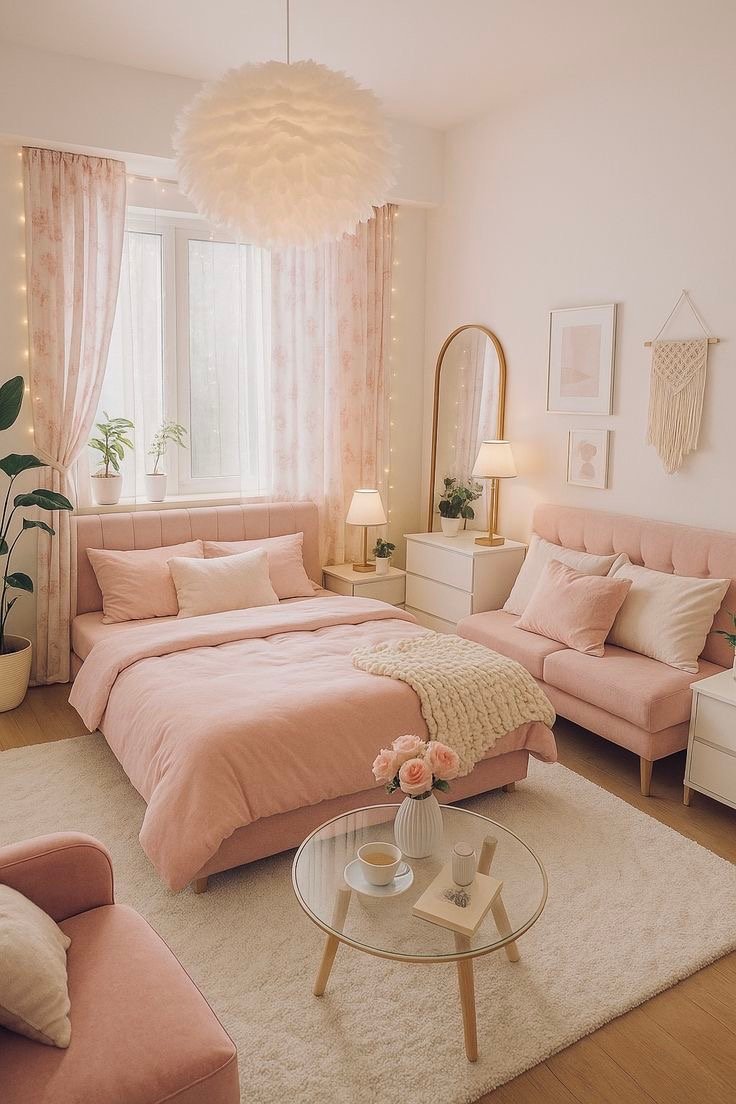 Your bed is the focal point of the room, and soft blush pink bedding instantly sets the tone. Choose a duvet set with plush textures for that dreamy, cloud-like feel. Pair it with coordinating throw pillows for extra comfort and style.