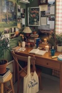 Creating a desk setup that is both functional and inspiring can transform the way you work, study, or create. This cozy corner blends warm lighting, personalized decor, and practical storage solutions to keep everything organized while maintaining a welcoming atmosphere.